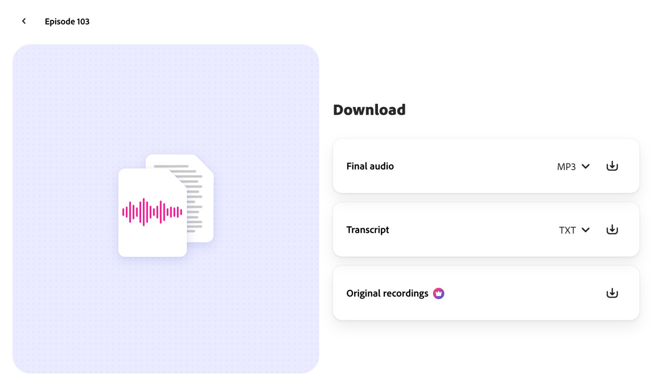 Choose your preferred "Final Audio" format (MP3 is most common) and press the download icon.