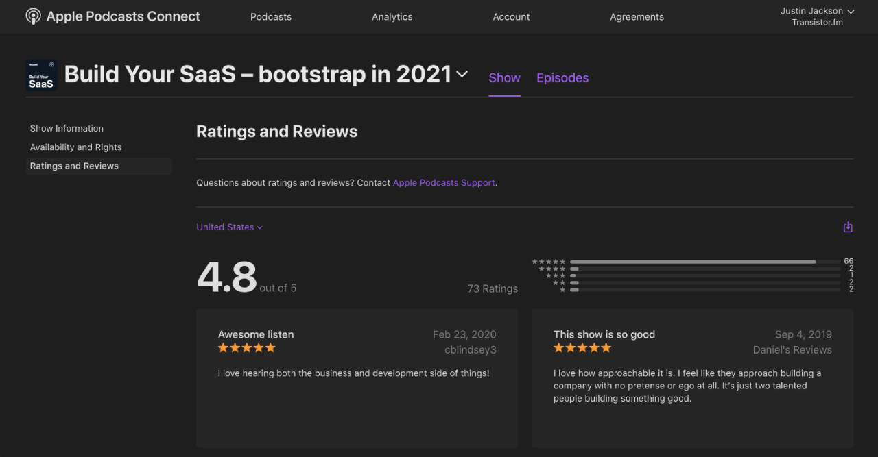 The biggest improvement: you can now see all your podcast's reviews in one place (and filter by country).