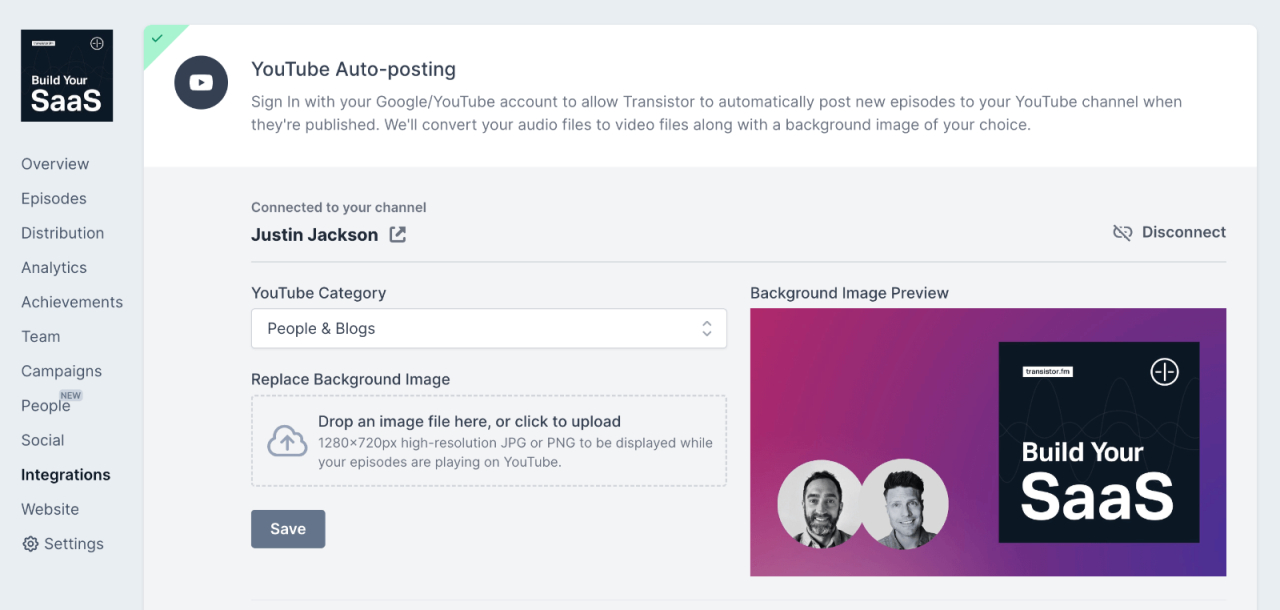 Upload your episodes, edit your custom podcast website, and distribute your podcast everywhere. All from within your Transistor.fm account.