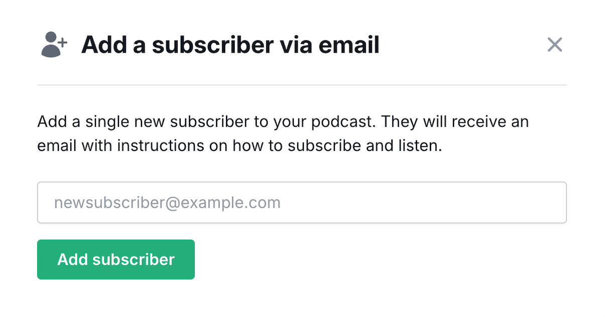 Invite a subscriber by sending them an email directly form the Transistor dashboard.