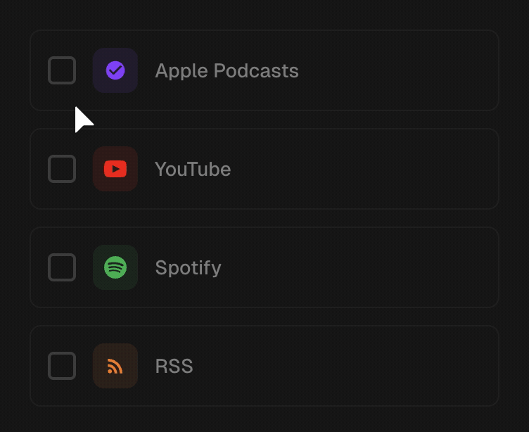 Add your video episode, and we’ll automatically publish it to YouTube, Apple Podcasts, Spotify, RSS, and more.
