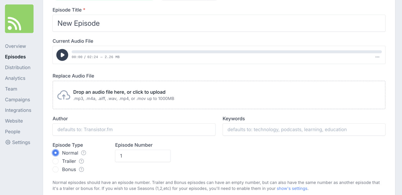 3. Publish at least one episode