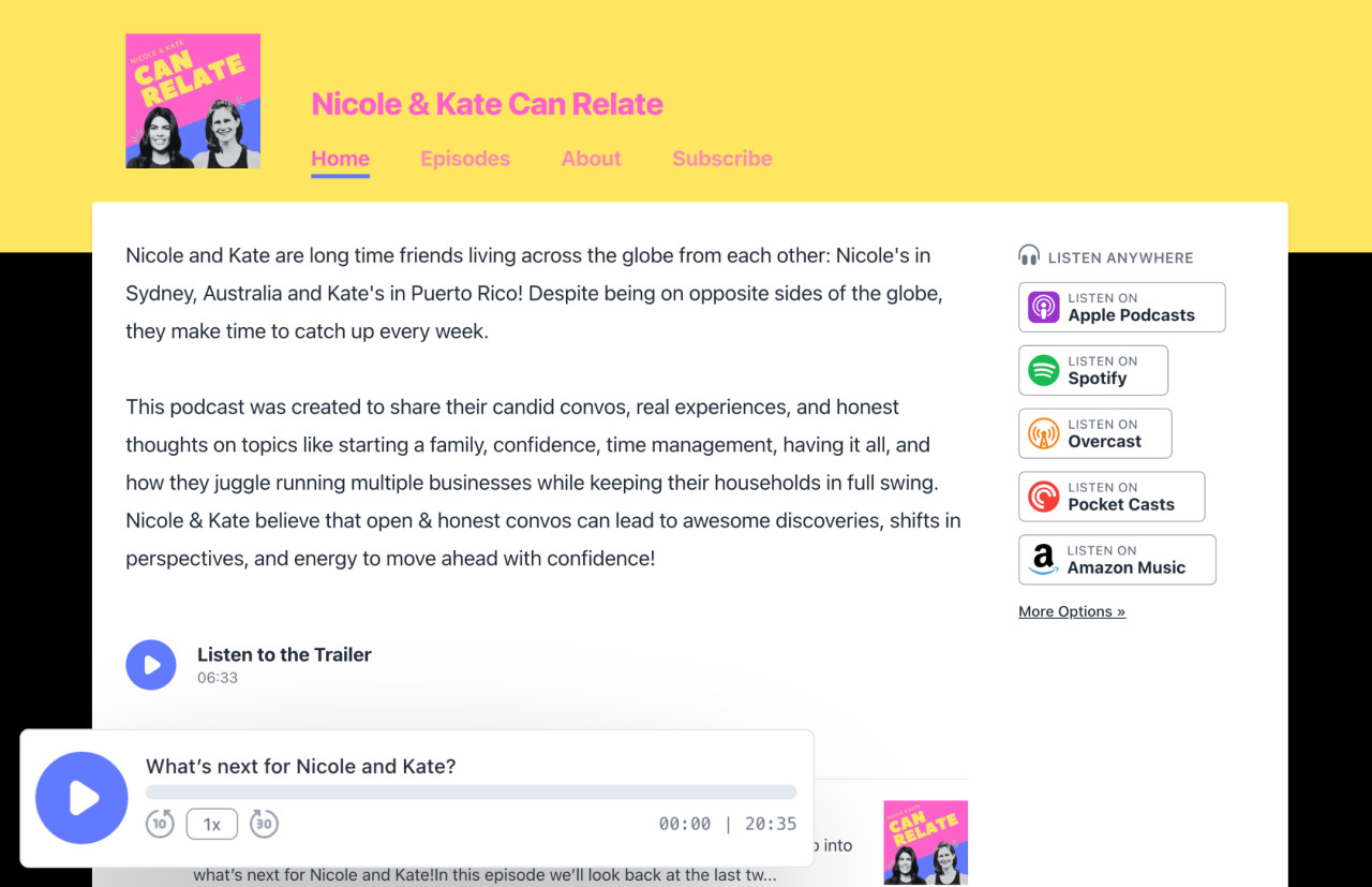 Select a design and Transistor will automatically generate a website for your podcast.