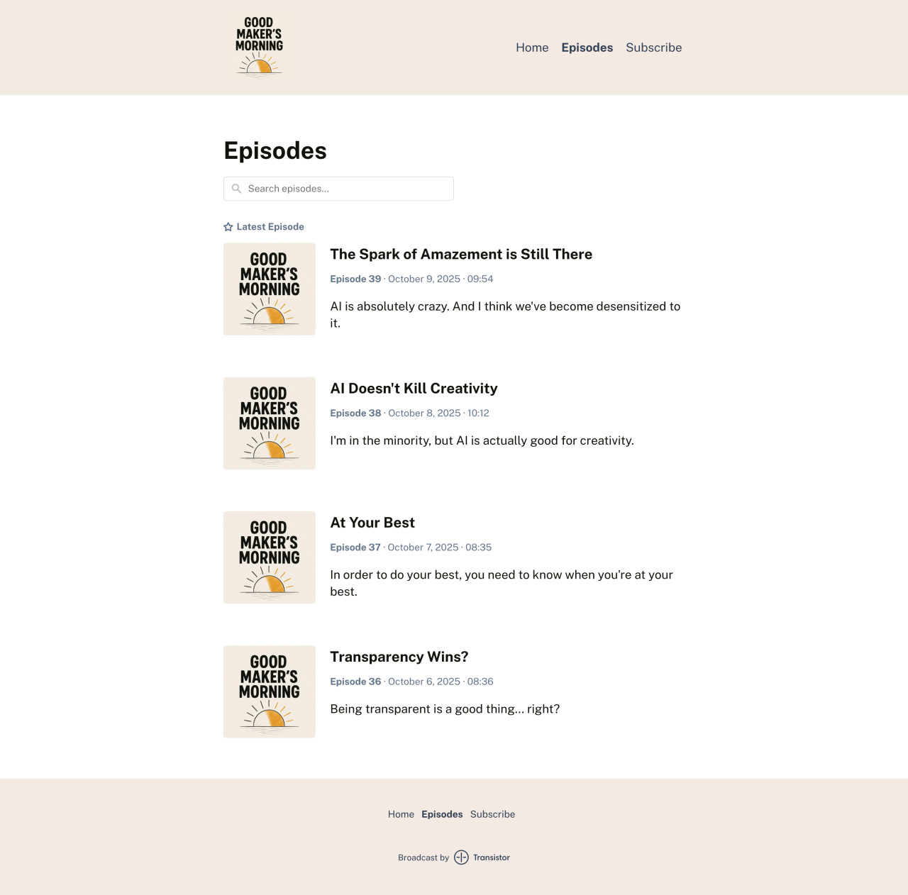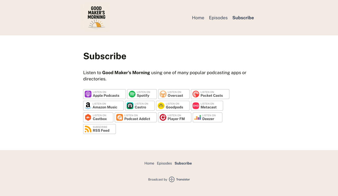 This podcast website was created with Transistor's website builder using the mint theme.